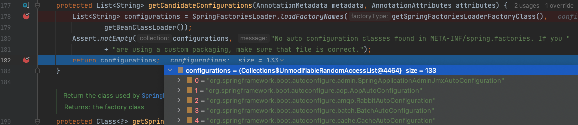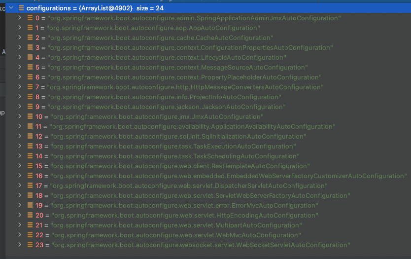 기본 의존성으로 filter를 거친 후 살아남은 Configuration은 24개정도