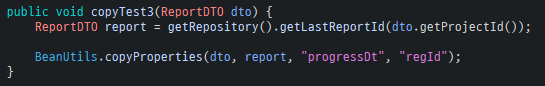 이때 BeanUtils.copyProperties 메소드를 통해 한줄로 해결할 수 있습니다.