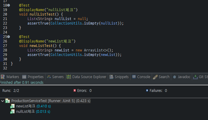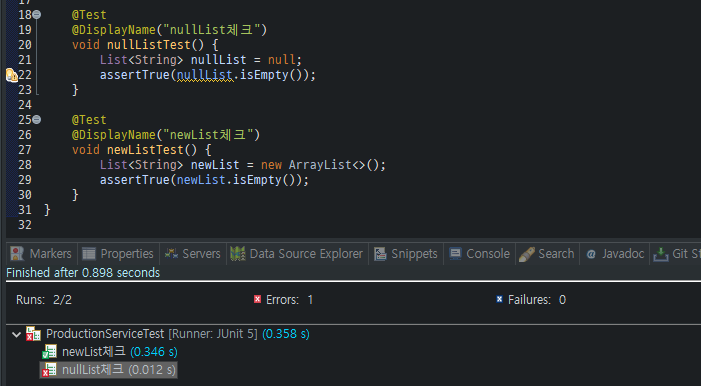 @DisplayName("nullList체크")