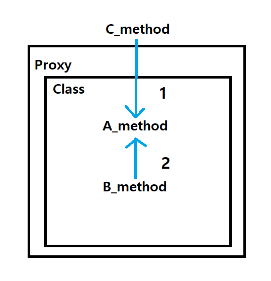 외부메소드인 C에서 A메소드를 호출할 시 프록시가 감싸져있는 A메소드를 호출하게 된다.