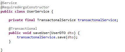 이렇게 saveUser에 트랜잭션을 걸게되면 save 트랜잭션이 아닌 saveUser에 있는 트랜잭션이