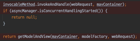 invokeAndHandle() : 핸들러(컨트롤러)를 실행합니다.