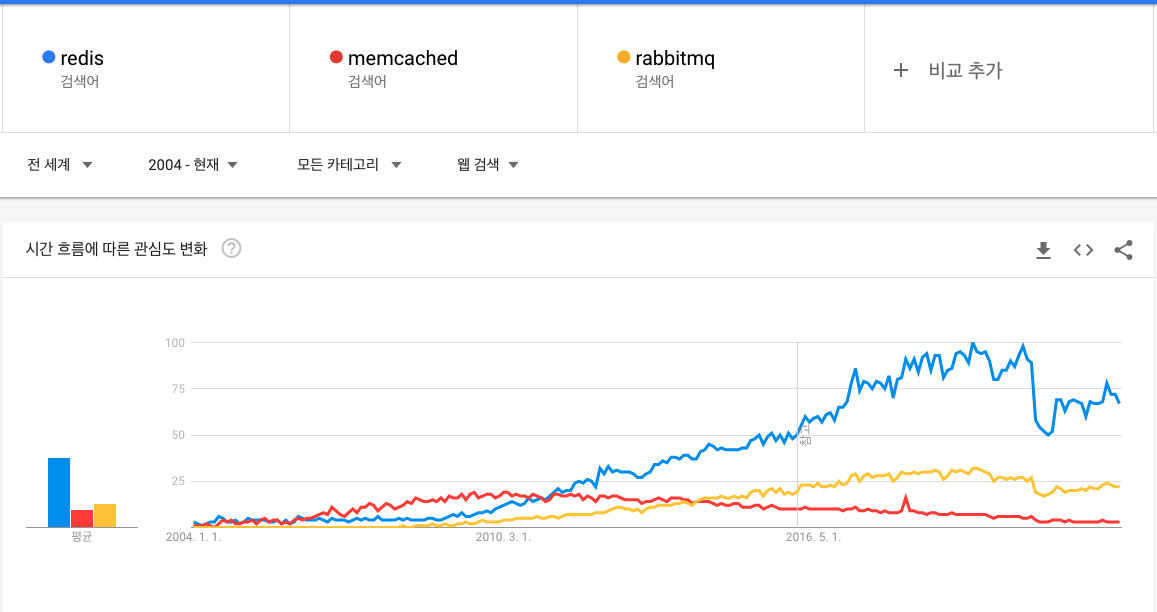 여전히 Redis의 관심이 압도적으로 많은 걸 확인할 수 있습니다.