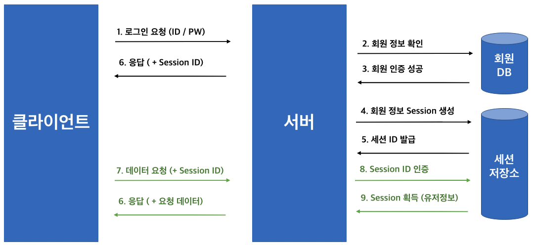 반면에 세션은 서버에 저장되기 때문에 서버는 사용자가 보낸 세션 ID를 조회하는 역할을 합니다.